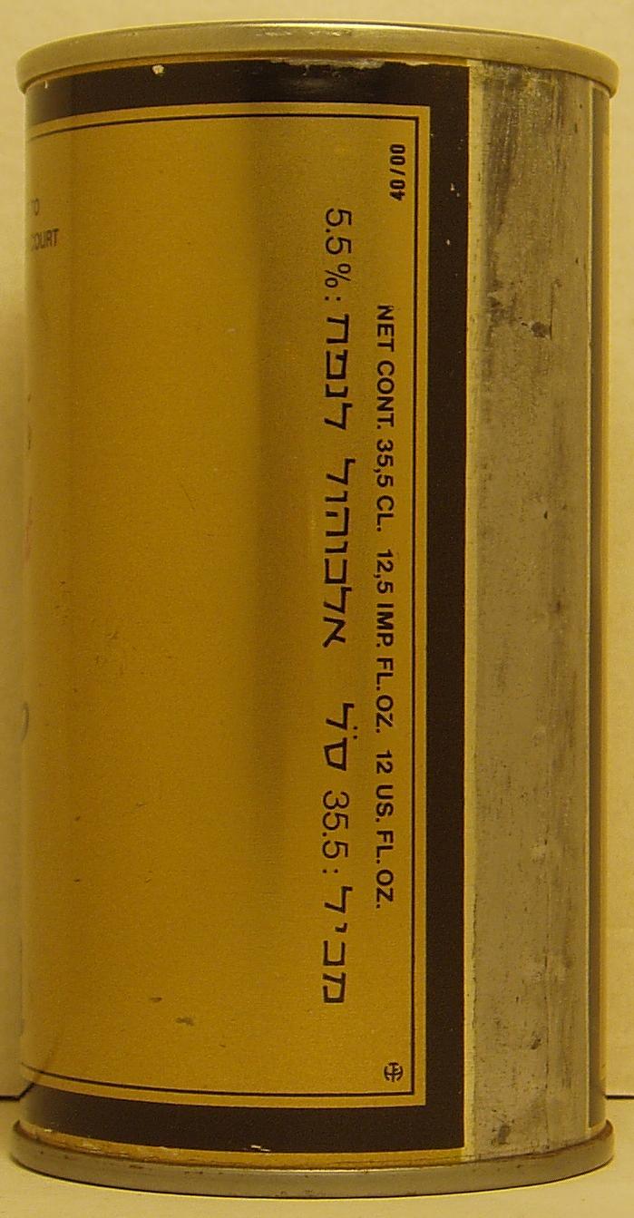 Brewed in Denmark, sold in Israel, 35.5cl SS, 40/00, canmaker Haustrup, side 1