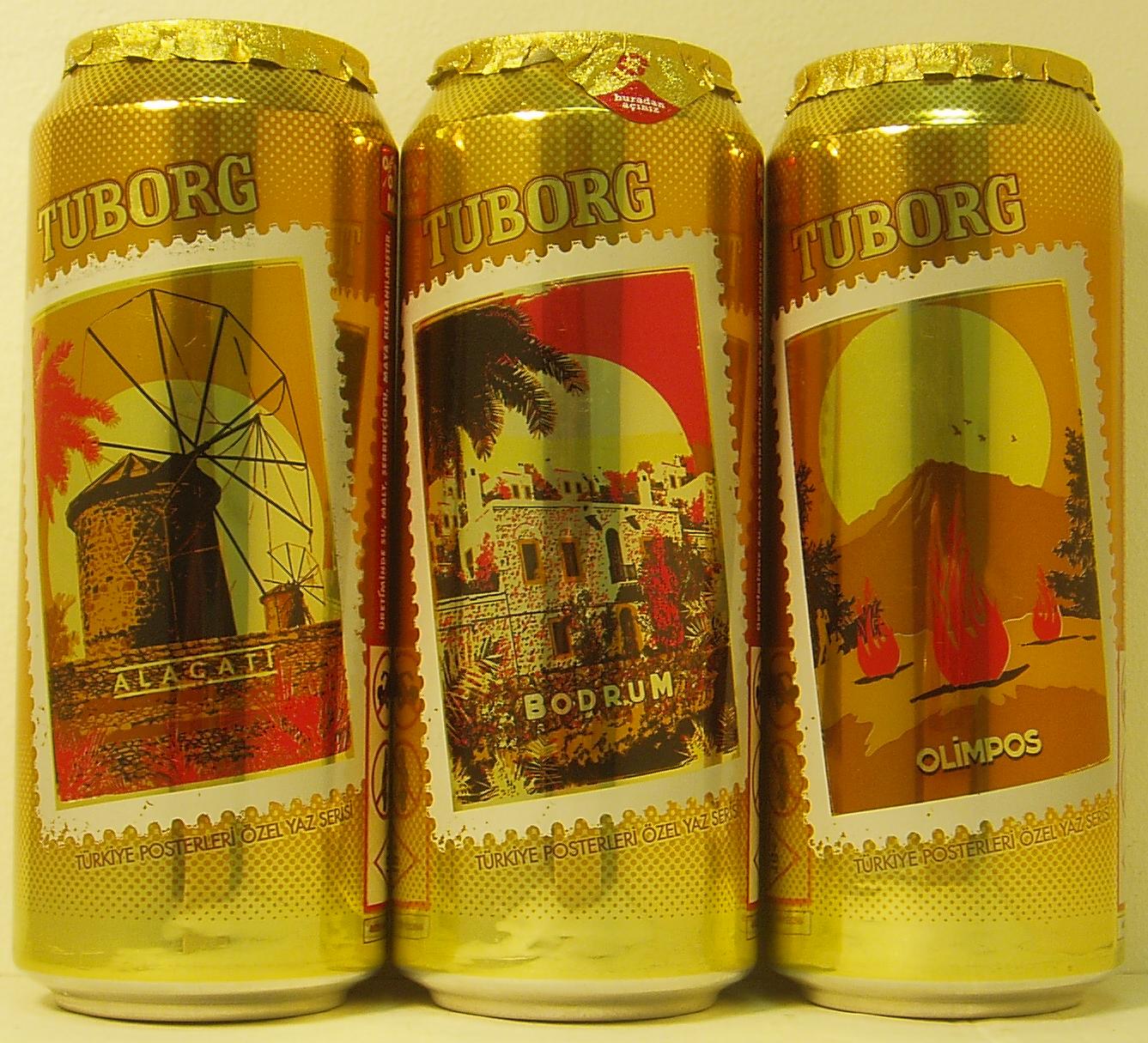 Türk Tuborg brewery, 50cl AL, 3 can se, canmaker REXAM, backsides