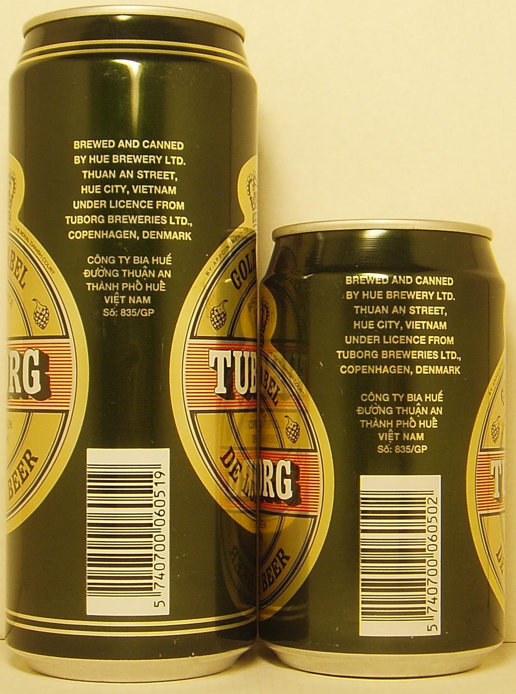 Brewed by Hue Brewery Ltd, Hue City, 33cl and 50cl AL, canmaker KJP, side 1