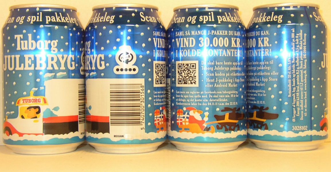 Brewed and sold in Denmark, Christmas 2011, 33cl AL, 3028102, canmaker REXAM