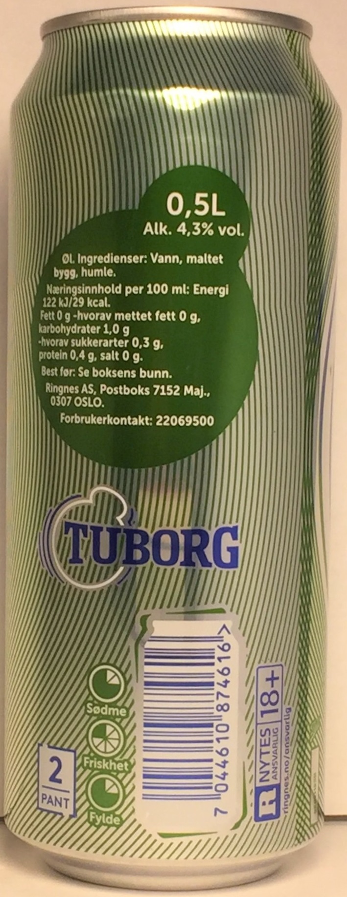 Ringnes Brewery, Norway, 0,5L AL, canmaker Ball, backside