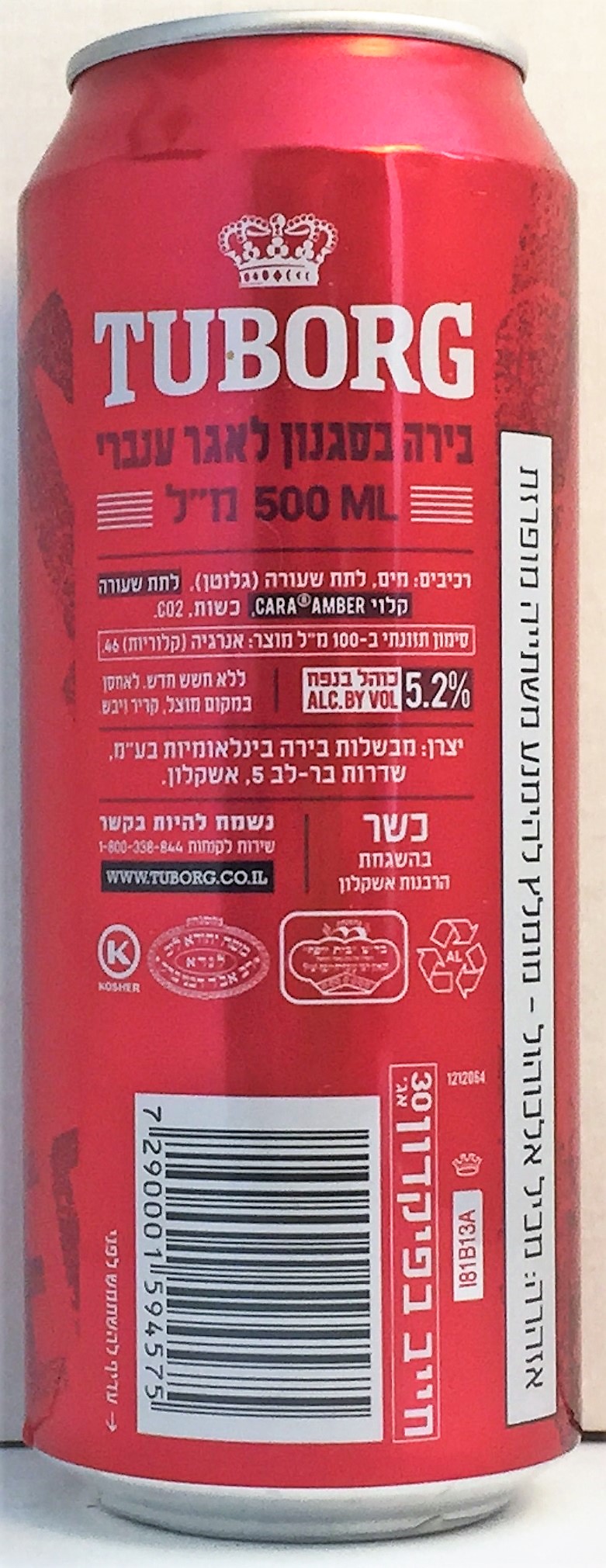 Brewed in Israel, 500ml AL, canmaker CROWN, backside