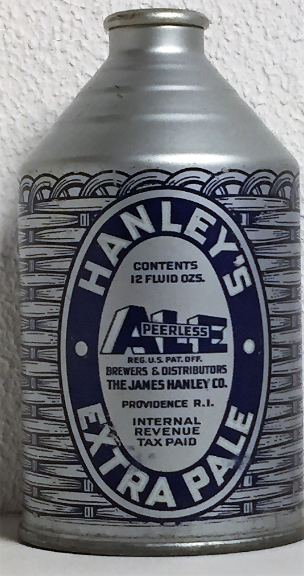 The James Hanley Co, Providence RI,12 fl ozs CT, canmaker CROWNTAINER