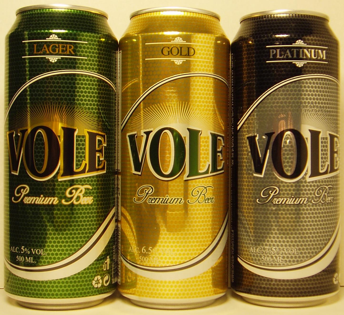 VOLE Premium Beer LAGER, GOLD & PLATINUM